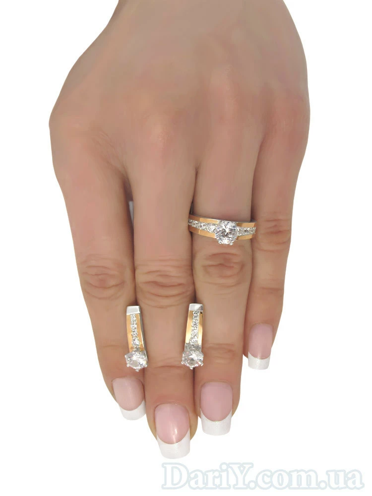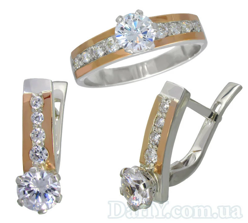 Серебряный набор с золотыми накладками и фианитами. "Нона".