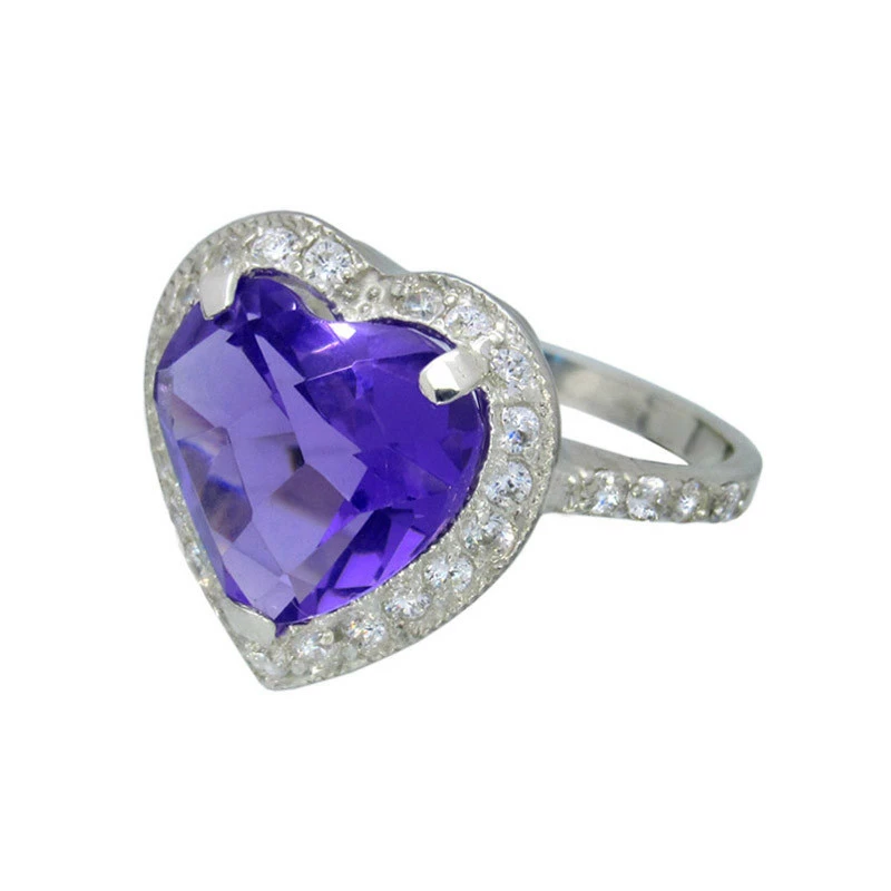 Серебряный кольцо с камнем в форме сердца "Сердце океана"