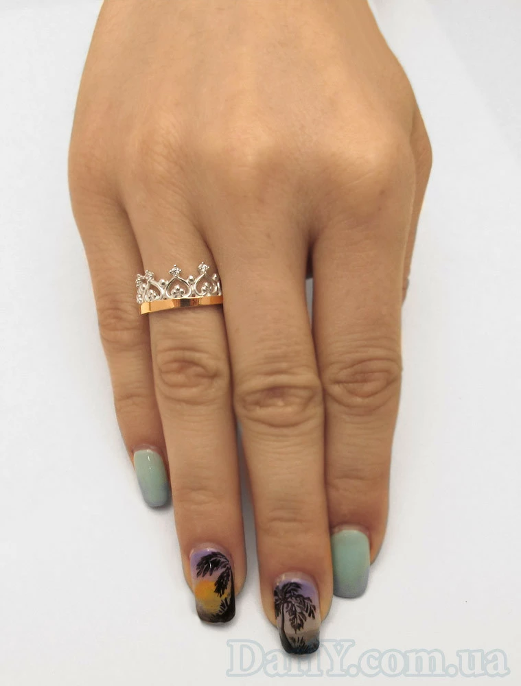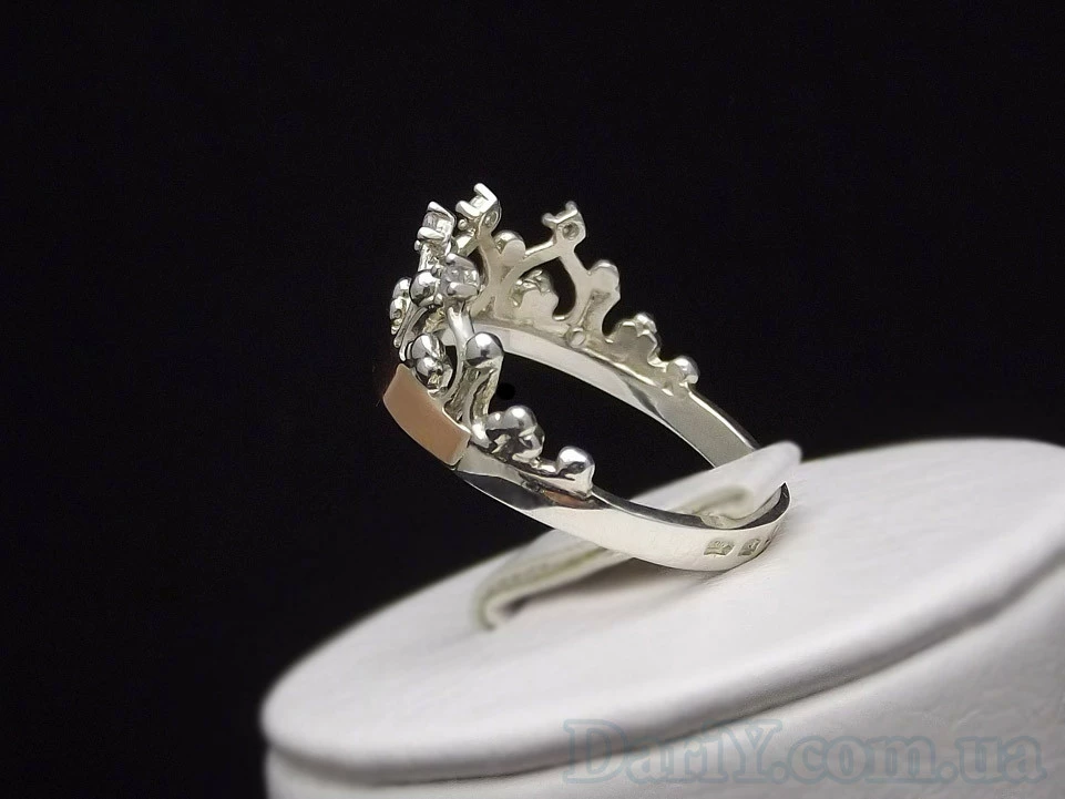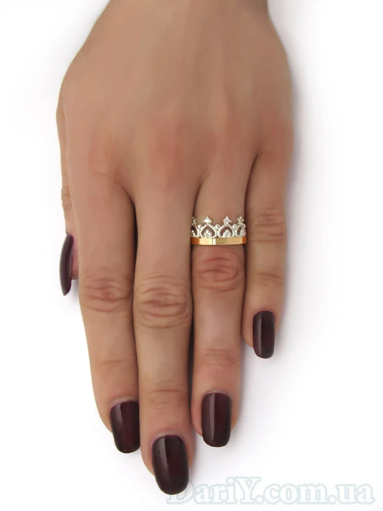 Серебряное кольцо с золотой пластиной и камнями (фианит) Корона