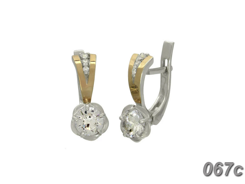 Серьги с цветком из серебра с золотыми пластинами и фианитами