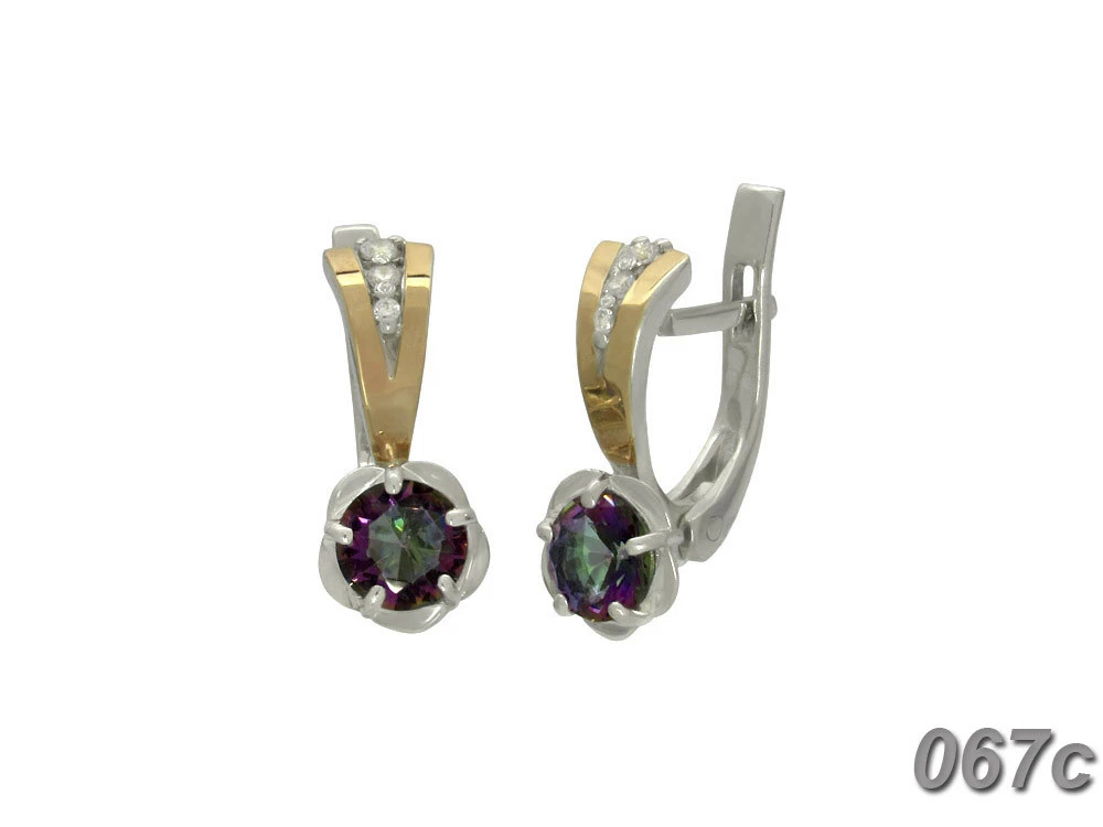 Серьги с цветком из серебра с золотыми пластинами и фианитами