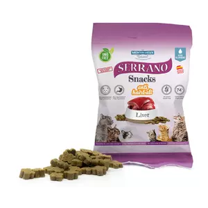 Снеки Serrano от MEDITERRANEAN NATURAL для кошек представлены небольшими кусочками, которые благодаря своему размеру, текстуре и вкусу идеально подходят для дегустации. Сделанные из мяса и рыбы, приготовленных при низкой температуре, они содержат все питательные вещества сырья и являются идеальной пищевой добавкой для вашей кошки. Они не содержат глютена, искусственных красителей, ГМО и трансжирных кислот. Кроме того, они содержат ингредиенты, которые помогают предотвратить образование комков шерсти , способствуя правильной работе желудочно-кишечного тракта.