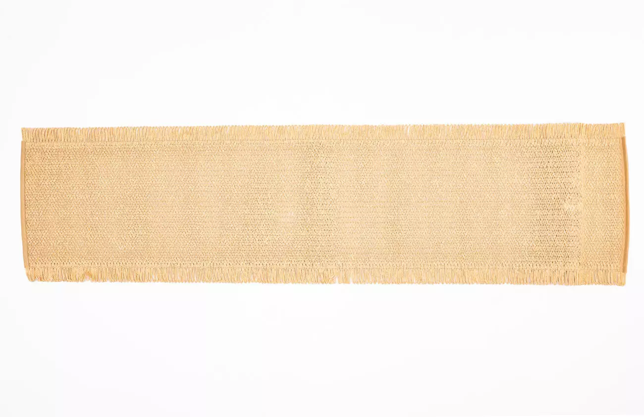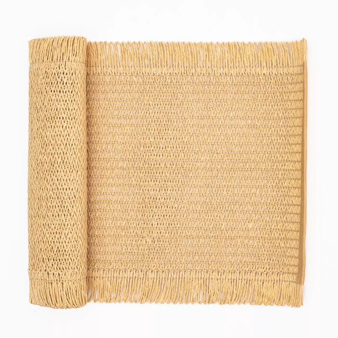 Ця декоративна доріжка для столу – стильне рішення для сервірування та декору інтер'єру. Вона привносить у простір природні мотиви та створює атмосферу затишку, а фактурне плетіння та акуратна бахрома по краях роблять виріб виразним елементом сервірування.
