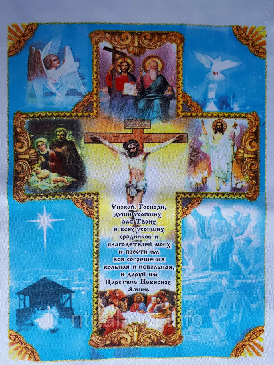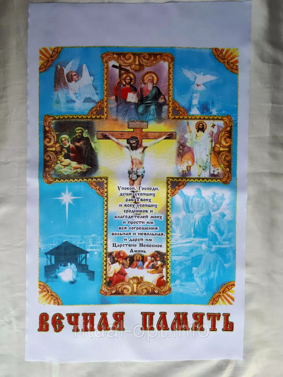 Серветка ритуальна.Тканина біла габардин.Високоякісний кольоровий друк.