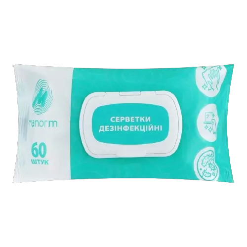 Серветки вологі дезінфекційні НОР-експрес Manorm 60 шт (спиртові)