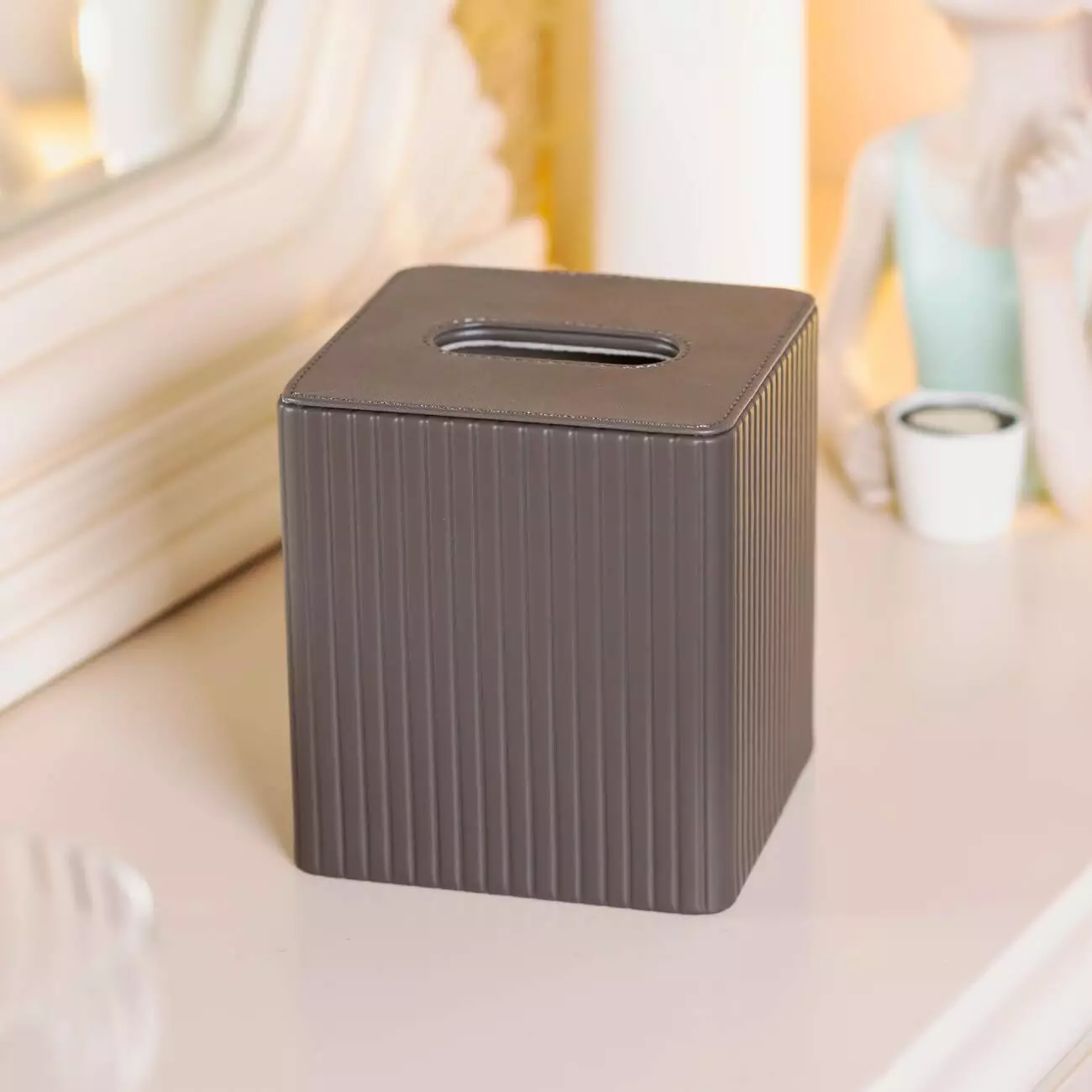 Серветниця з екошкіри 13х13х14,7 см, сірий