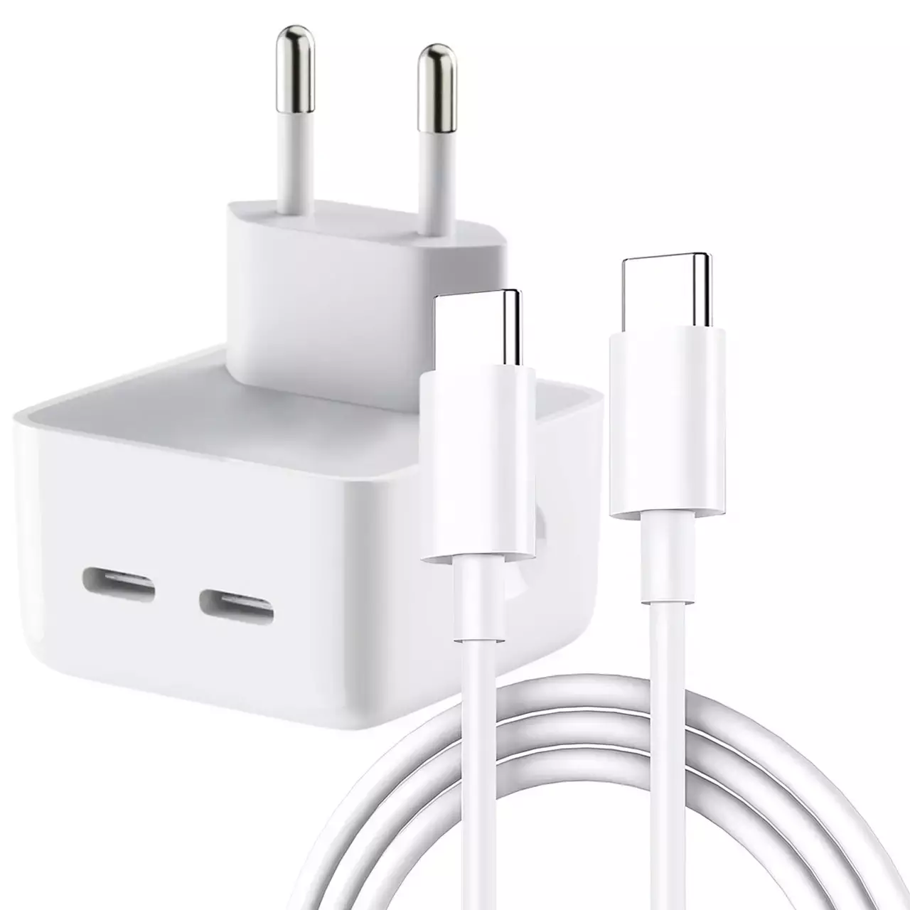 Сетевое зарядное устройство для Apple 35W с двумя портами USB-C - это надежное и мощное решение, которое дарит тебе комфорт и уверенность в зарядке твоих устройств Apple. Получи полный контроль над энергией своих устройств с этим компактным и мощным зарядным устройством.