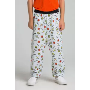 Деталі: Штани світло-сірого кольору. Стильний фірмовий принт. Вільний крій. Пояс на резинці.