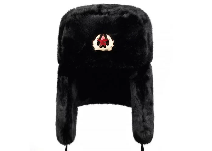 Шапка вушанка чорна. Шапка вушанка зі штучного хутра. Шапка вушанка із зіркою. Шапка-вушанка з кокардою