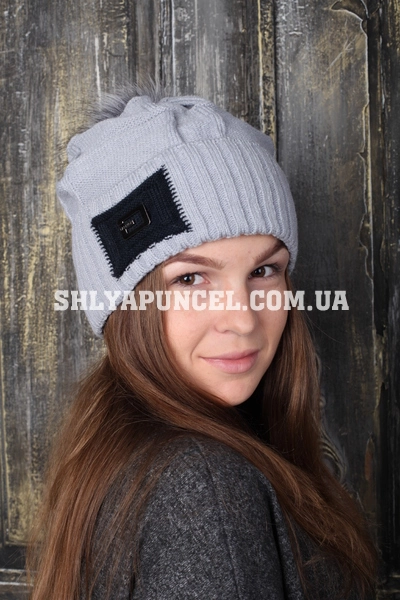 Молодежная шапочка с отворотом на флисе, размер 56-58, цвета: серый, белый, беж, черный, темно-синий.Бумбон искуственный.