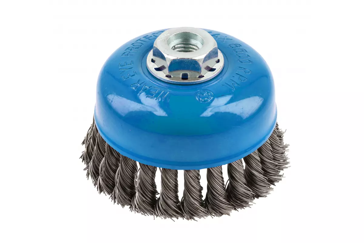 Чашечная щетка Hogert 100мм крученая стальная подходит для работы с