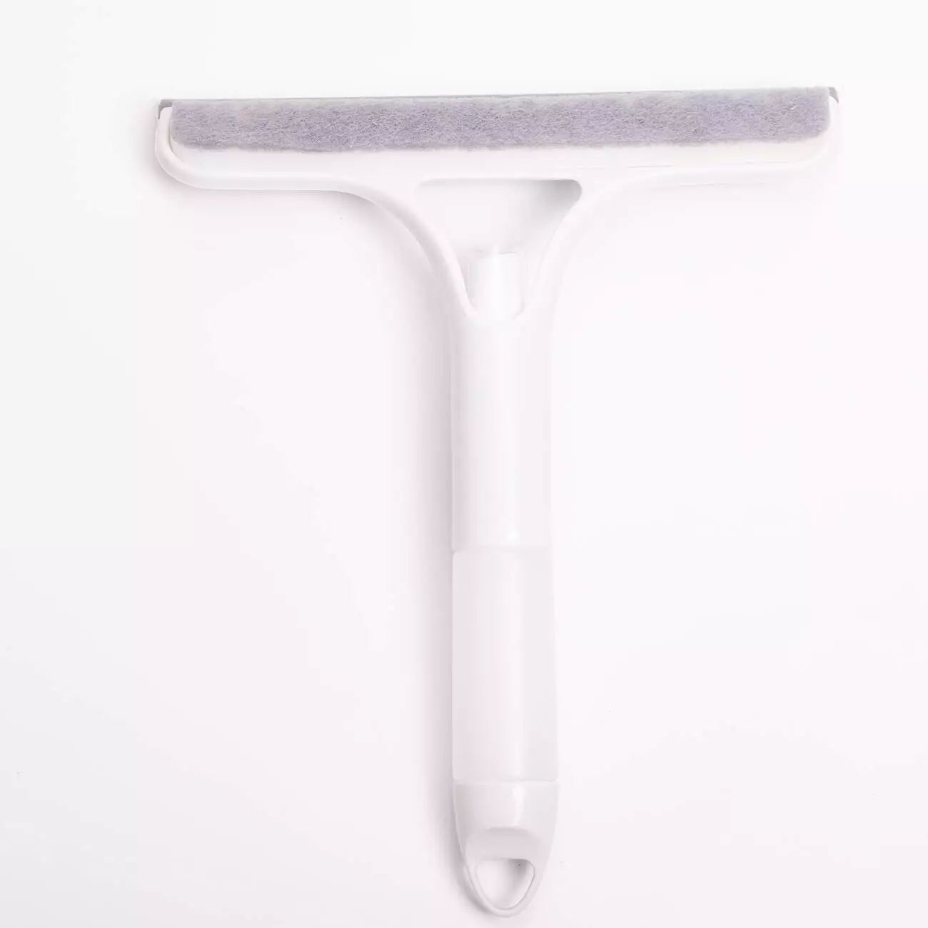 2. Трифункціональна конструкція: поролонова насадка для забрудненої поверхні, гумовий скребок для видалення води без розводів, вбудований резервуар з розпилювачем для зручної подачі миючого засобу.