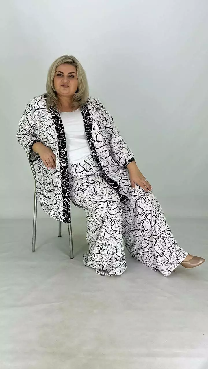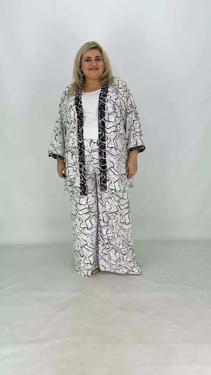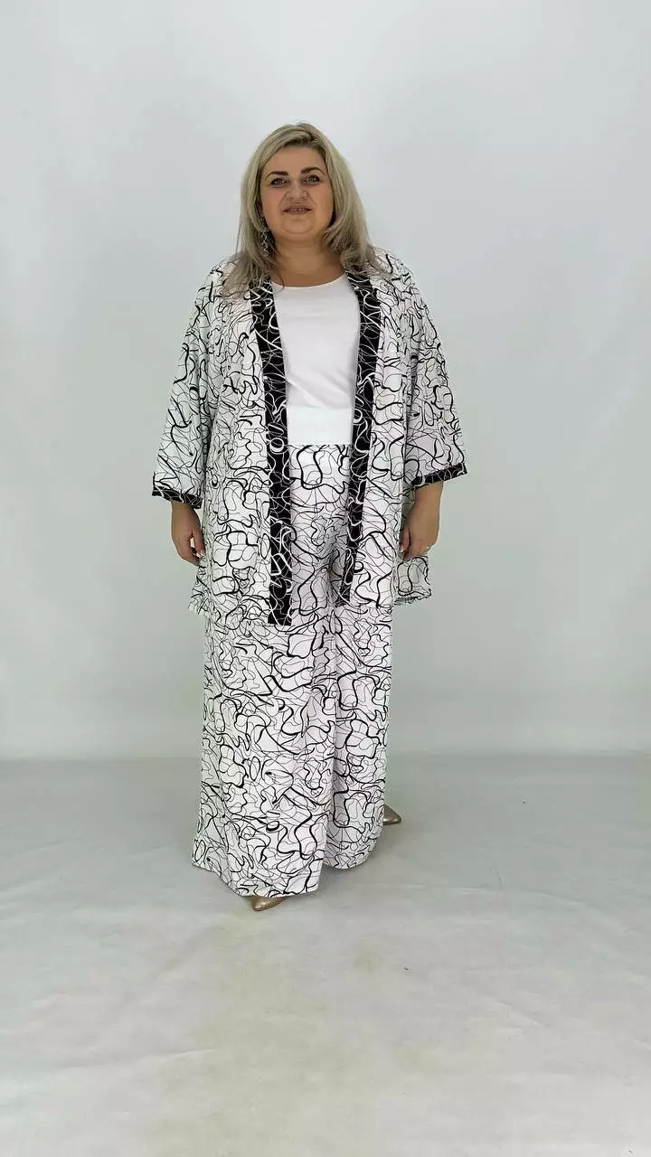 Шикарний легкий вільний костюм (накидка штани майка) "Серпантин" 62-64 66-68 70-72 74-76
