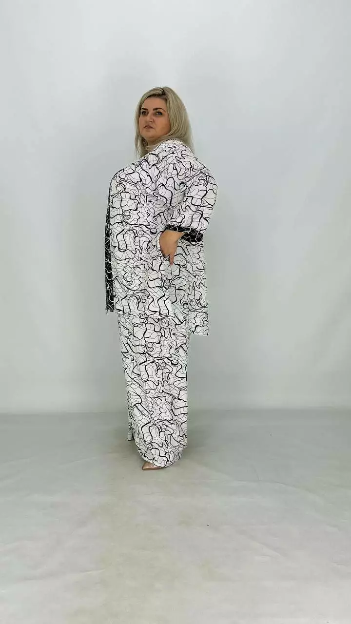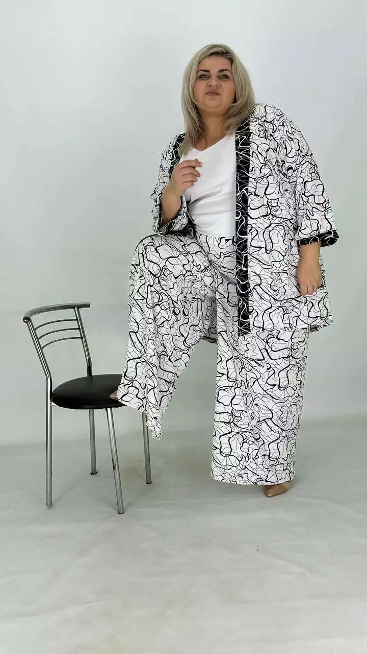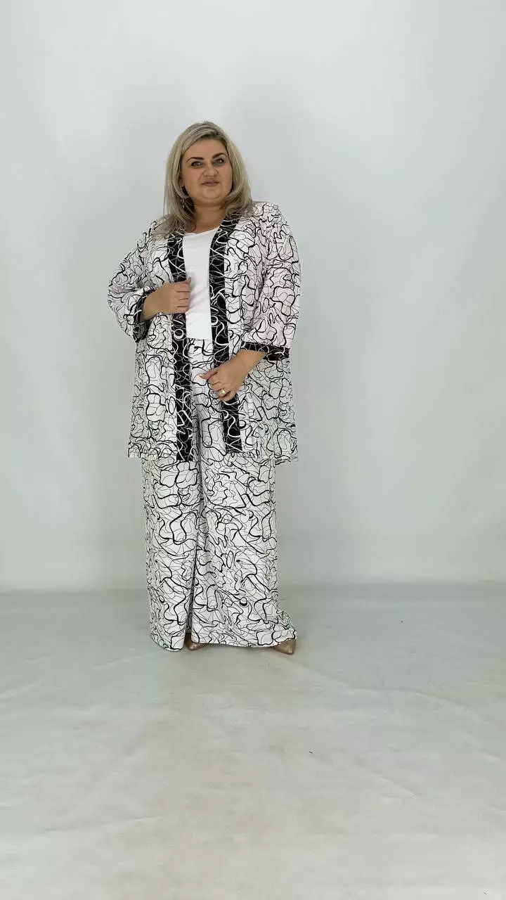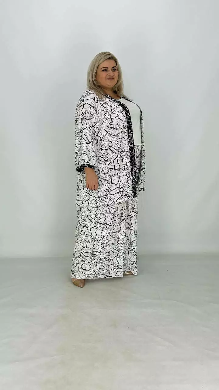 Шикарний легкий вільний костюм (накидка штани майка) "Серпантин" 62-64 66-68 70-72 74-76