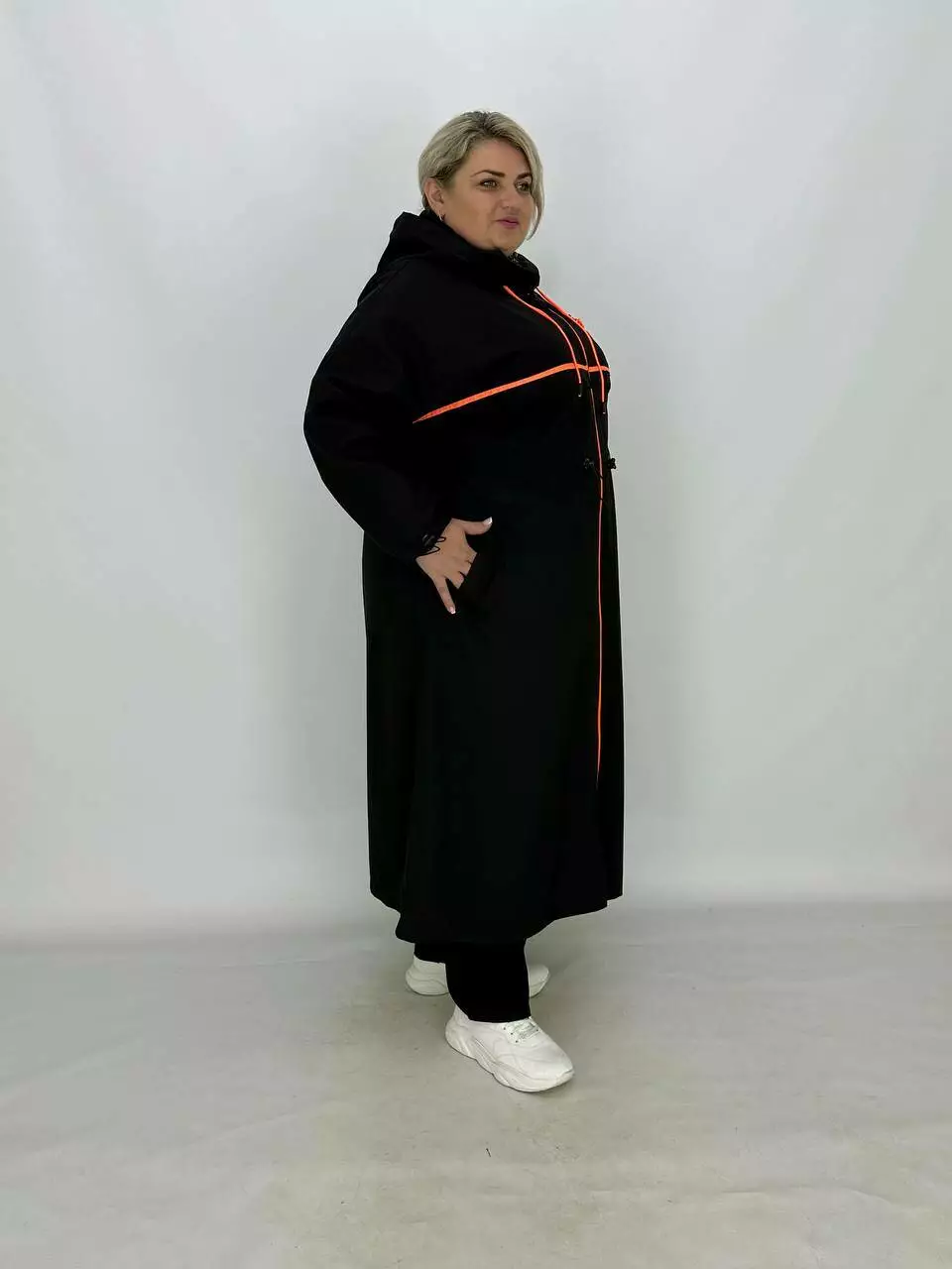 Шикарний вільний плащ максі зі вставками та капюшоном Розміри 62-64 66-68