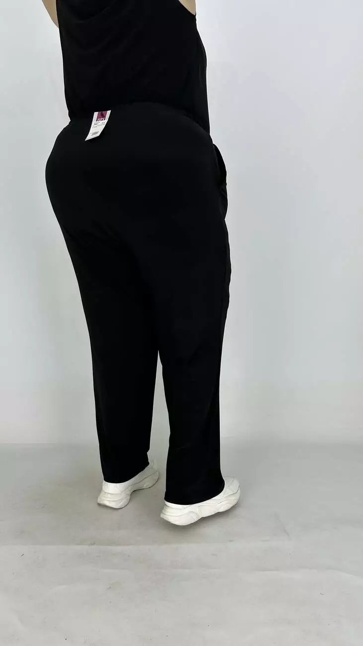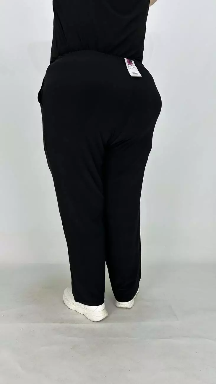 Широкі штани із трикотажу віскоза п-ва Туреччини з дуже гарною розтяжністю. Пояс у вигляді кокетки, ззаду на гумці, з кишенями, ширина низу штанів регулюється гумкою з фіксатором. Висока посадка, дуже зручна.