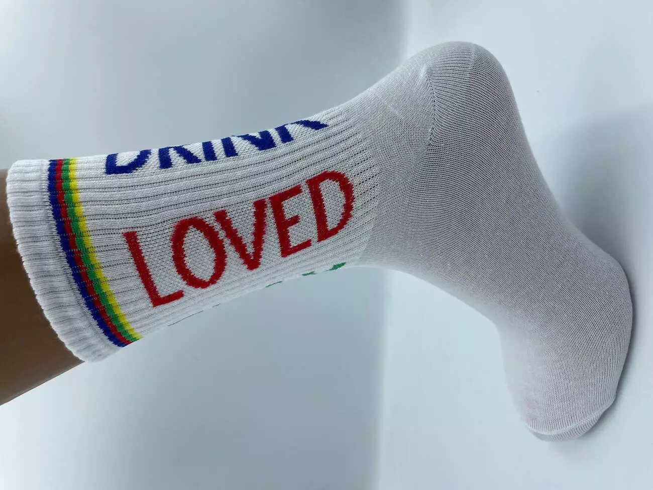 резинкою, в спортивному стилі. Яскравий напис додає шкарпеткам