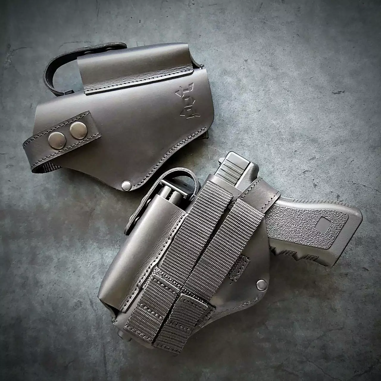 Шкіряна кобура під GLOCK 17 на MOLLE, чорна