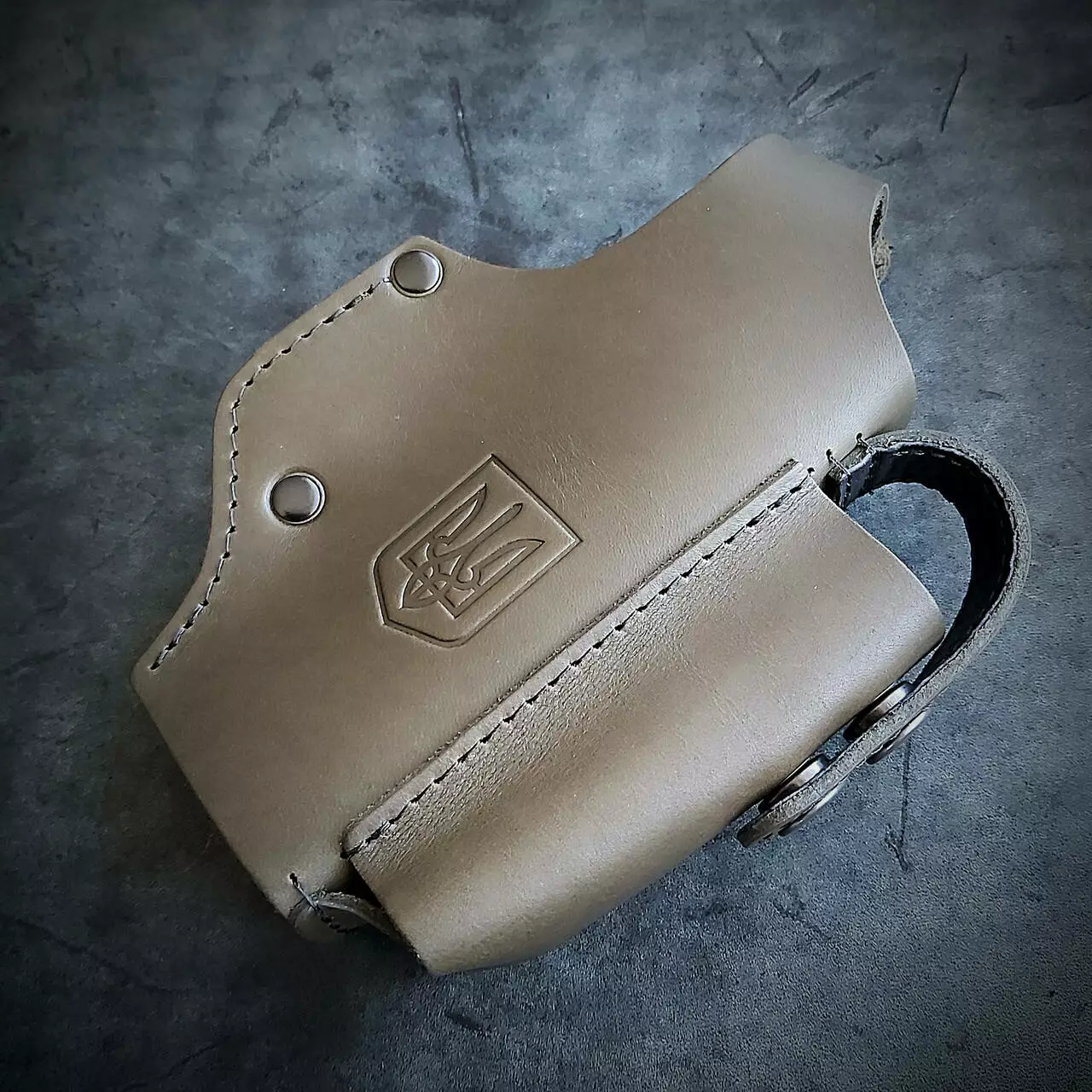 Шкіряна кобура поясна під HK VP9 | колір олива з гербом України