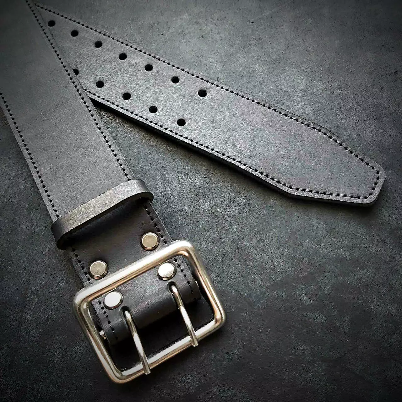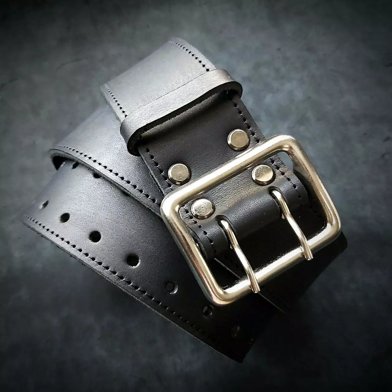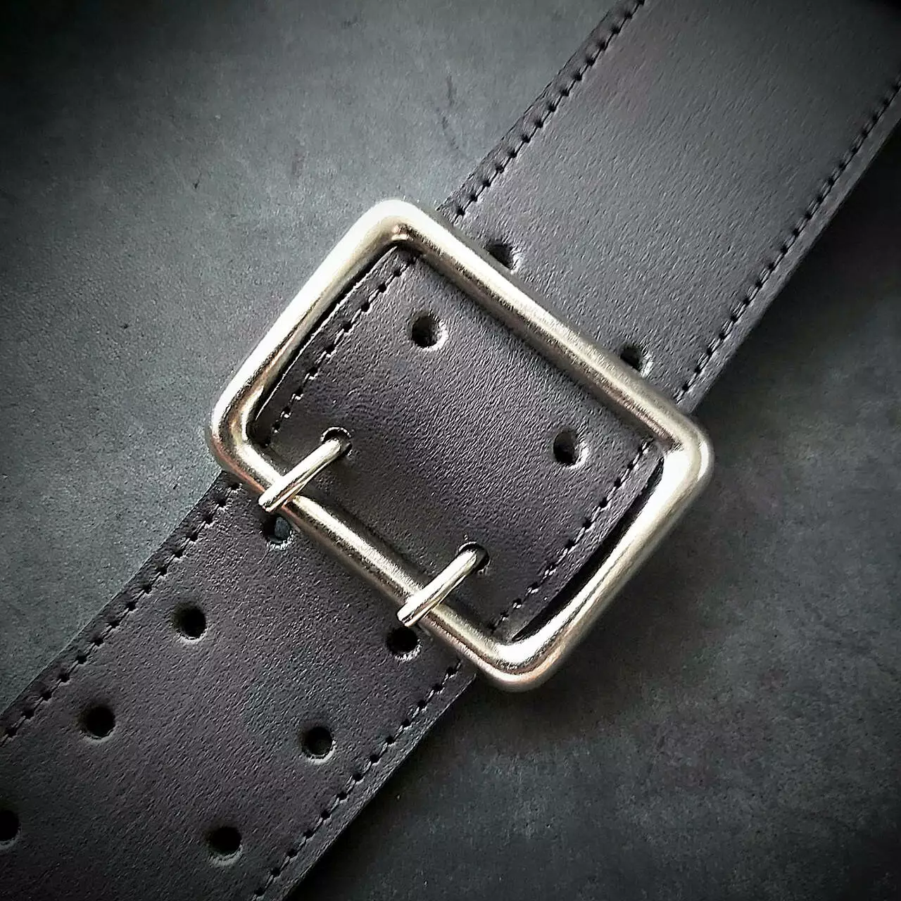 Шкіряний ремінь 5 см ширина, чорний, офіцерський