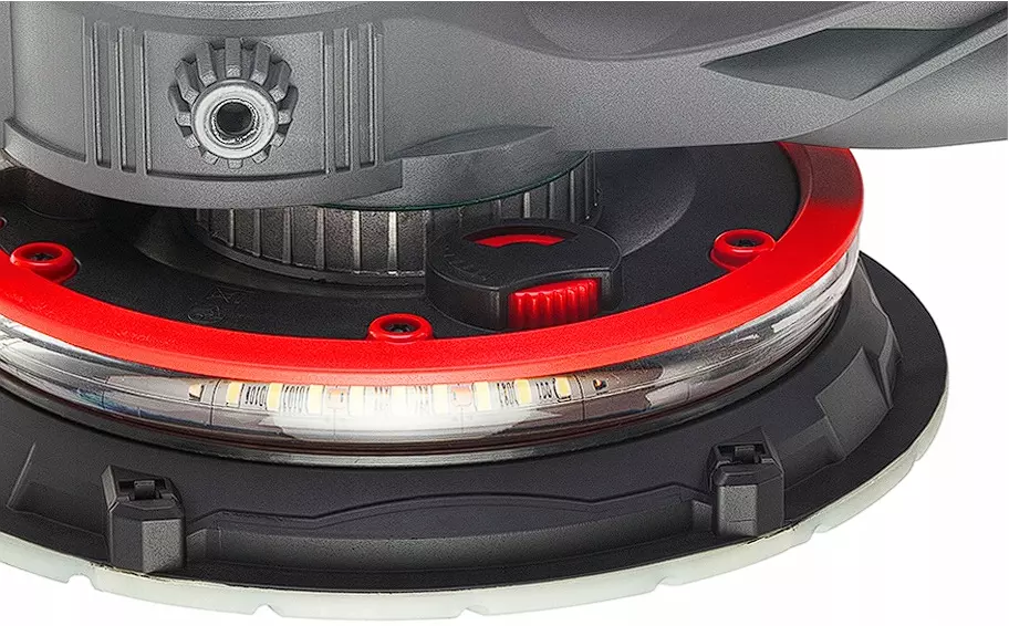 ​​​​​​Устройство имеет светодиодную подсветку на 360° , поэтому вам не нужно использовать дополнительные галогенные светильники для освещения стены. Рабочая зона освещается именно там, где мы шлифуем, что делает работу более точной, а желаемый эффект легче достичь.