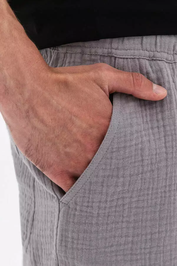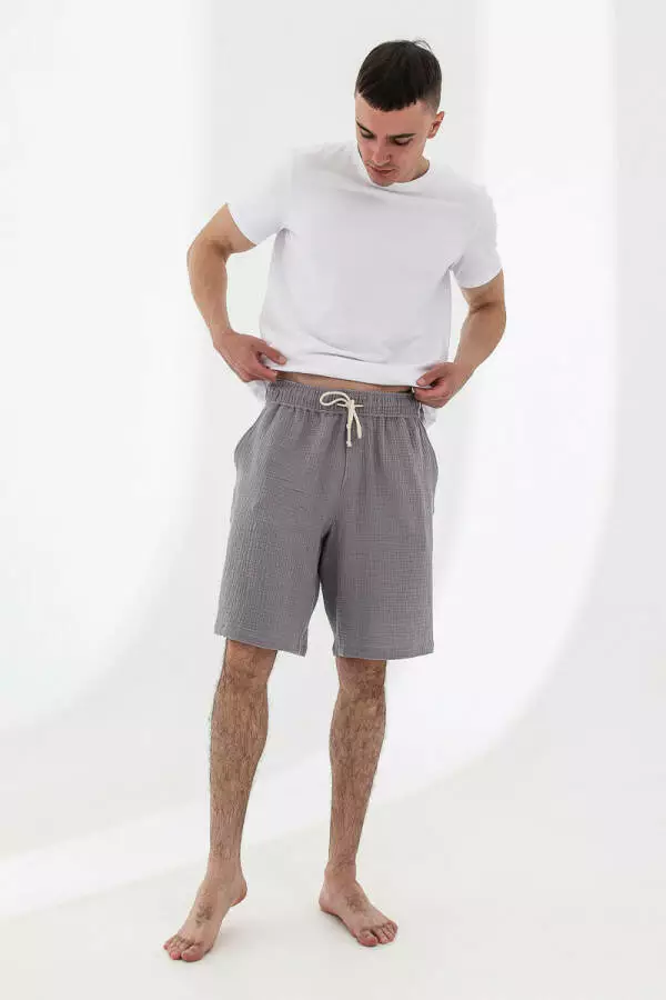 Муслін, з якого виготовлені ці шорти, відомий своєю легкістю і повітропроникністю. Цей матеріал природно "дихає", дозволяючи шкірі залишатися сухою і прохолодною навіть під час високих температур або активних рухів. Муслін м'який і приємний до тіла, що робить ці шорти ідеальним вибором для носіння вдома, на пляжі або під час прогулянок на свіжому повітрі. Шорти з цієї тканини відрізняються легкістю та комфортом, вони не створюють відчуття тяжкості і не натирають шкіру, забезпечуючи вам максимум свободи.