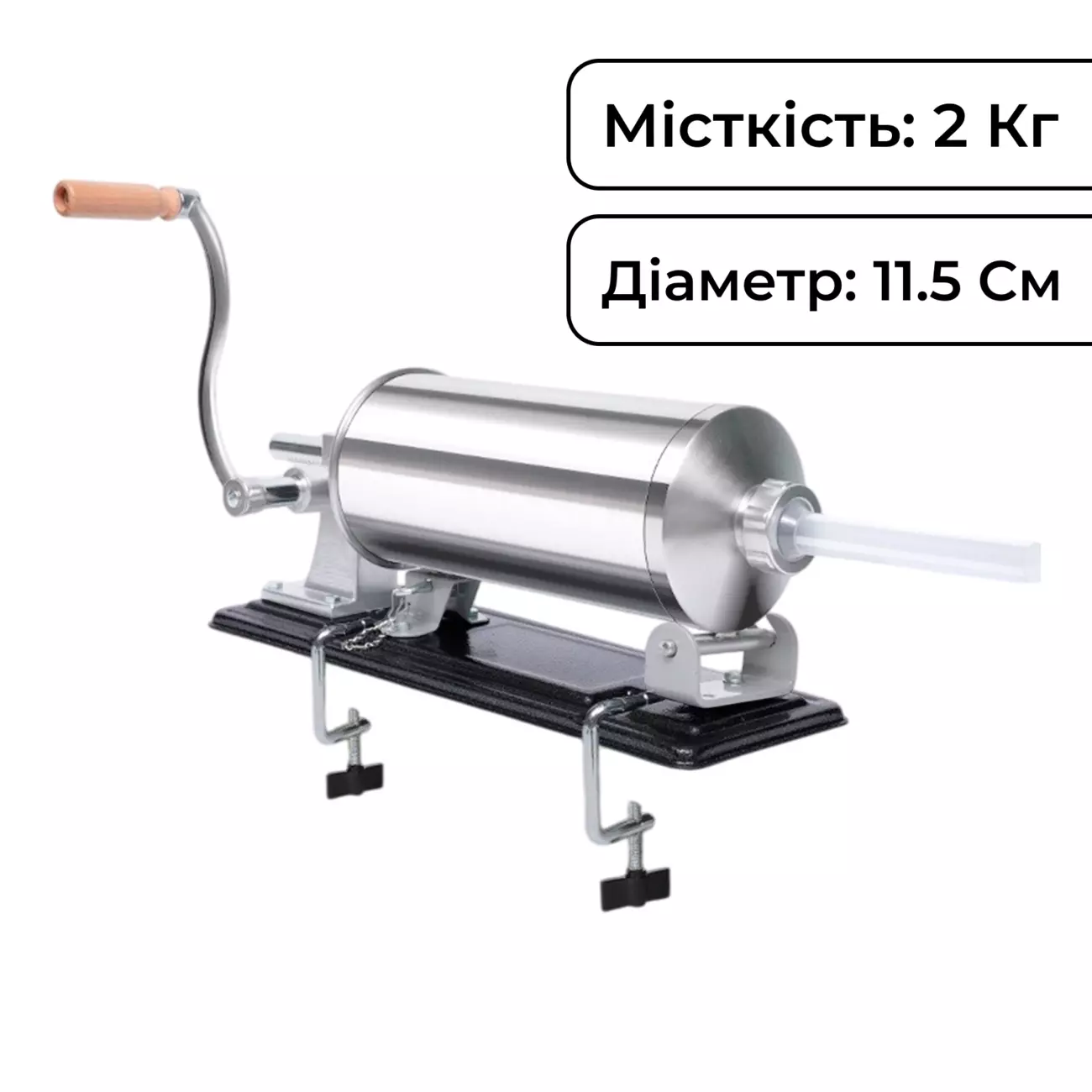 Шприц ковбасний горизонтальний на 2 кг із нержавіючої сталі 11,5 см