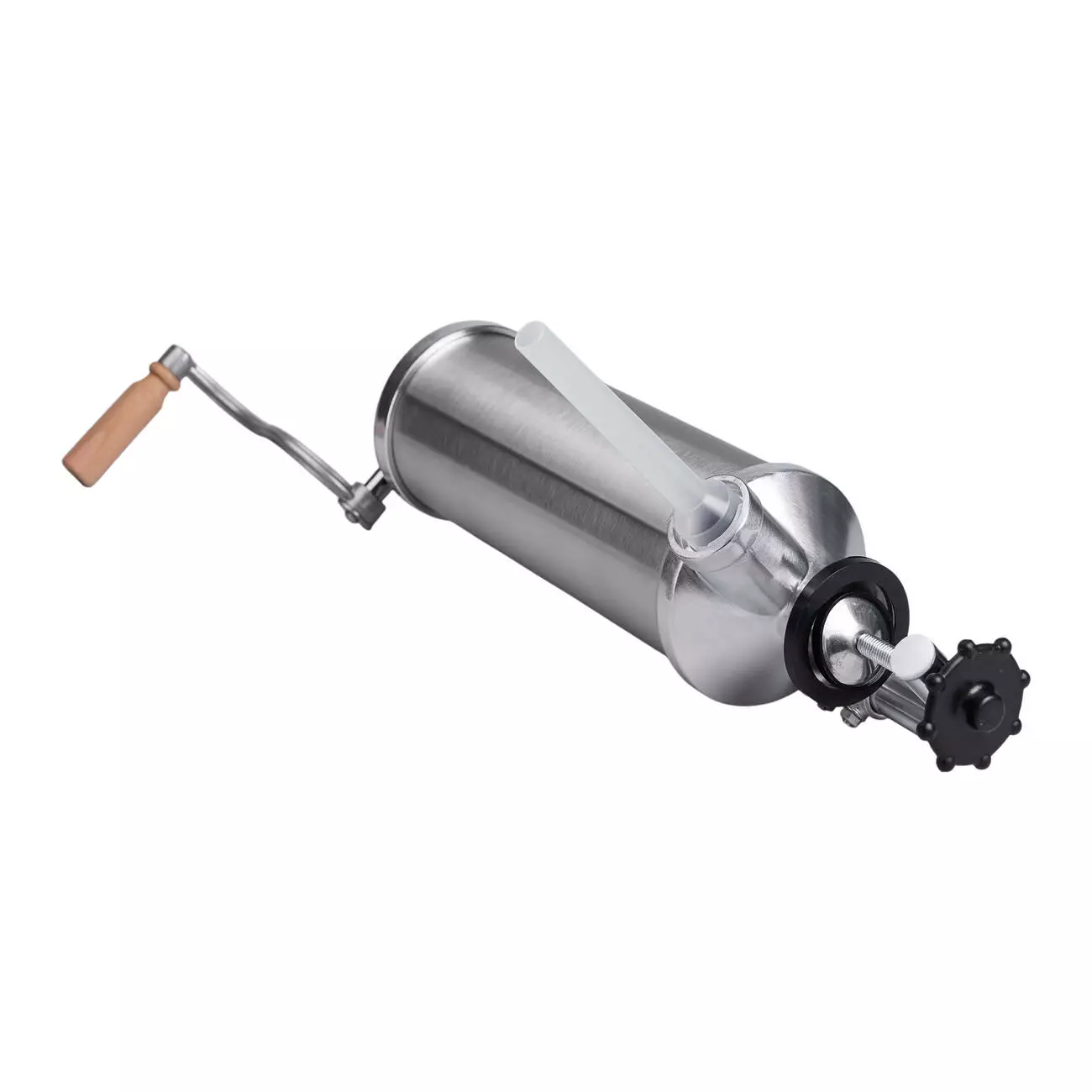 Шприц ковбасний вертикальний на 2,5 кг - ідеальний інструмент та помічник у виготовленні ковбасних виробів. Шприц має простий принцип роботи, ручний привід обладнано зручною ручкою. Фіксація шприца на робочій поверхні здійснюється за допомогою струбцини.