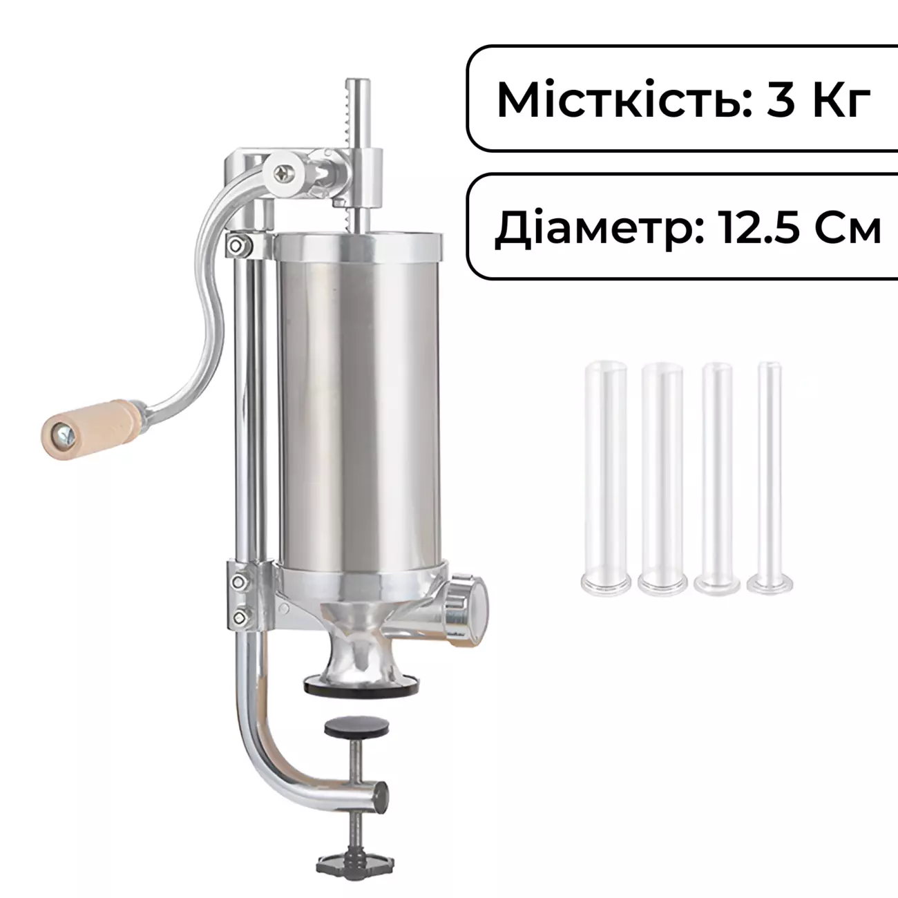 Шприц ковбасний вертикальний на 3 кг із нержавіючої сталі 12,5 см