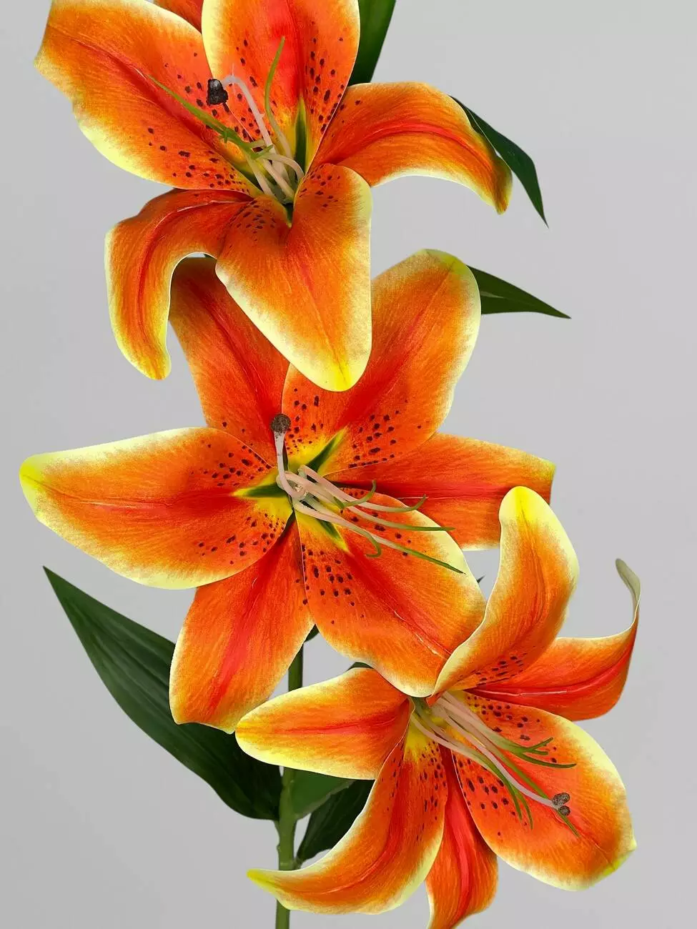 Штучна гілка лілій на 3 суцвіття, помаранчевий, 95 см