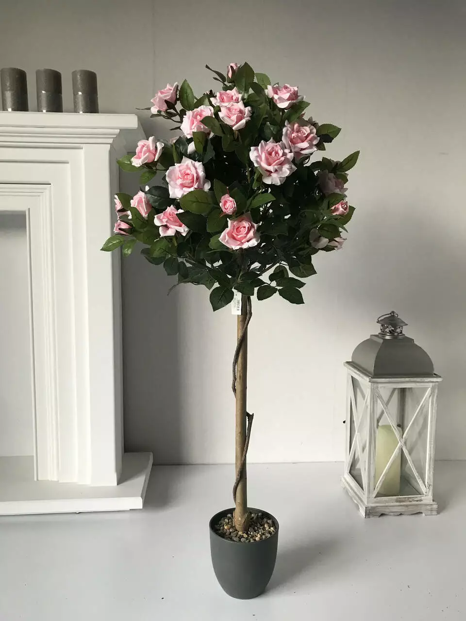Штучна висока ніжно-рожева троянда на штамбі 120 см у горщику — декоративний кущ для інтер’єру