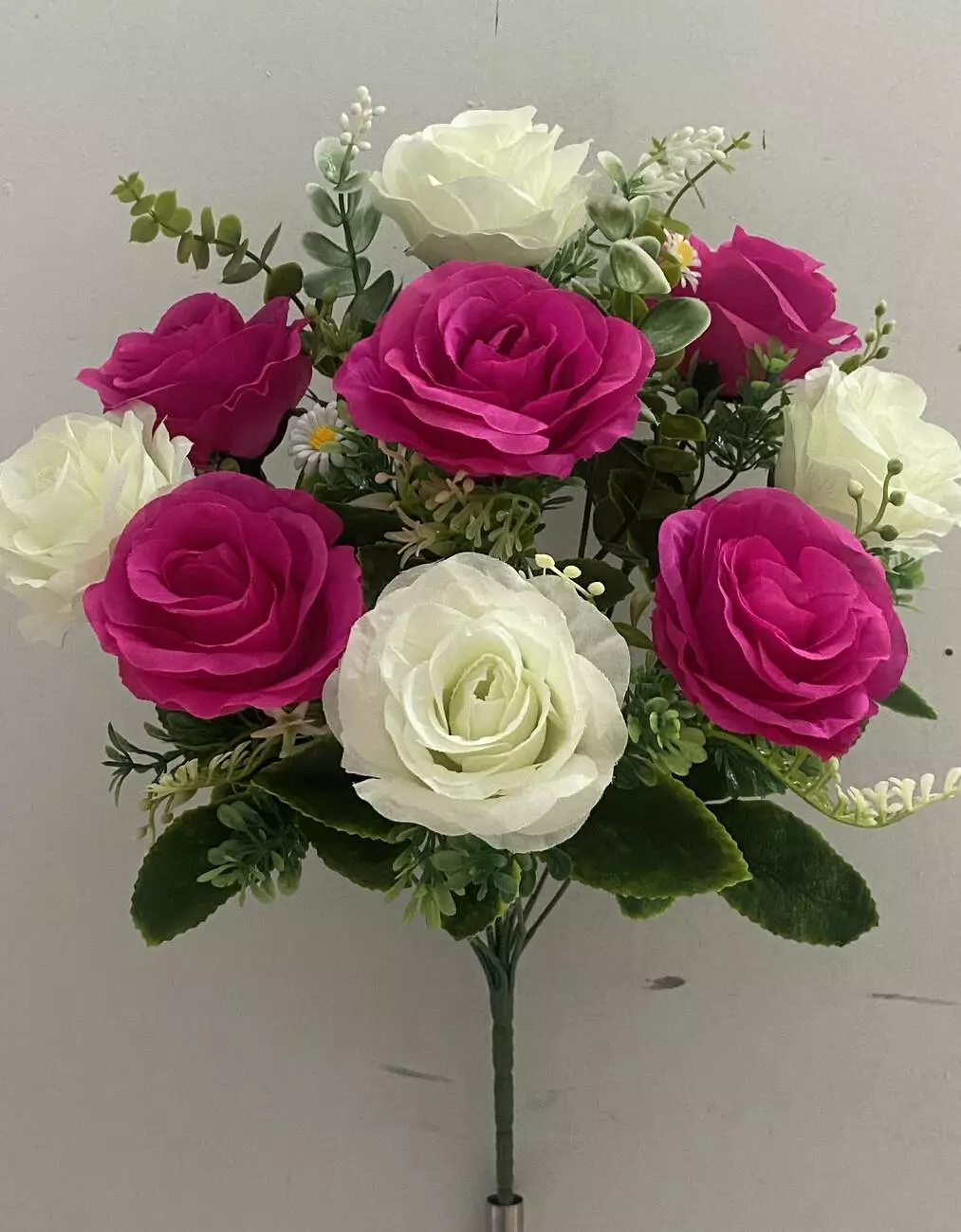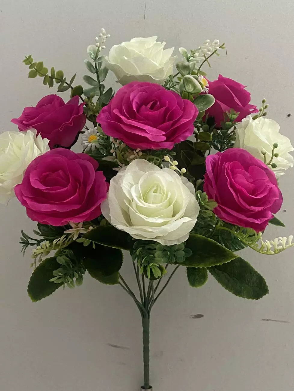 Штучні квіти оптом. Троянда двукольорова з Єфкалиптом