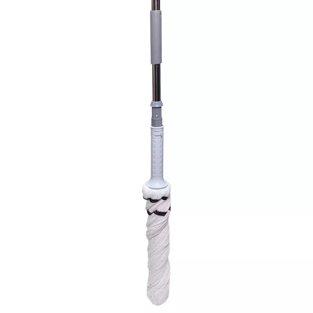 Насадка виконана з тканинних мотузкових волокон, які добре вбирають вологу та ефективно збирають пил і бруд. Конструкція дозволяє легко очищати навіть важкодоступні ділянки підлоги, а насадка підходить для багаторазового використання після прання.
