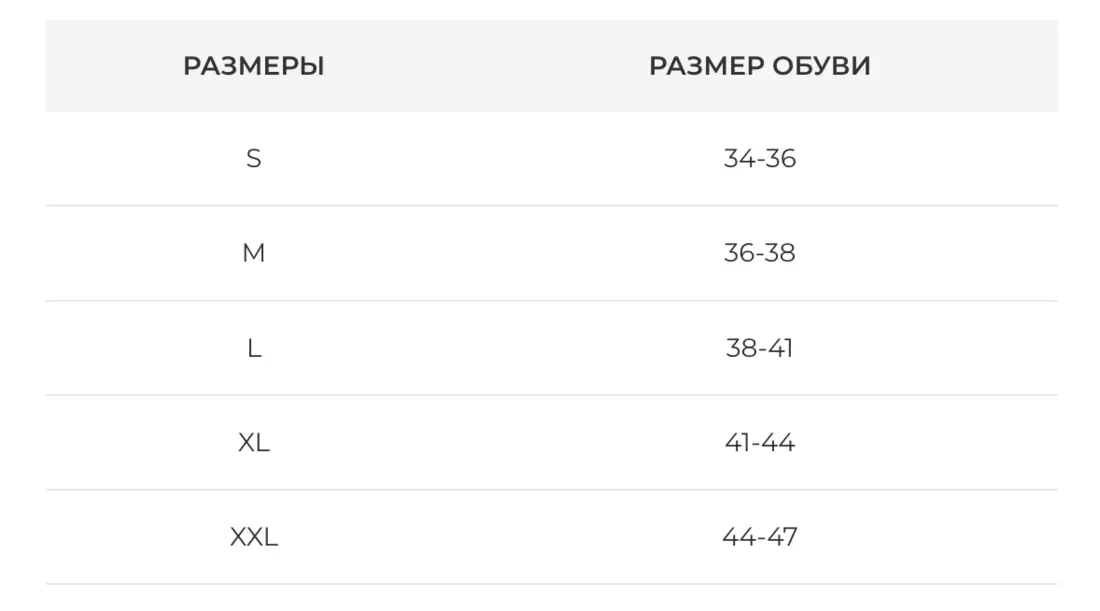 • подбирать по таблице размеров