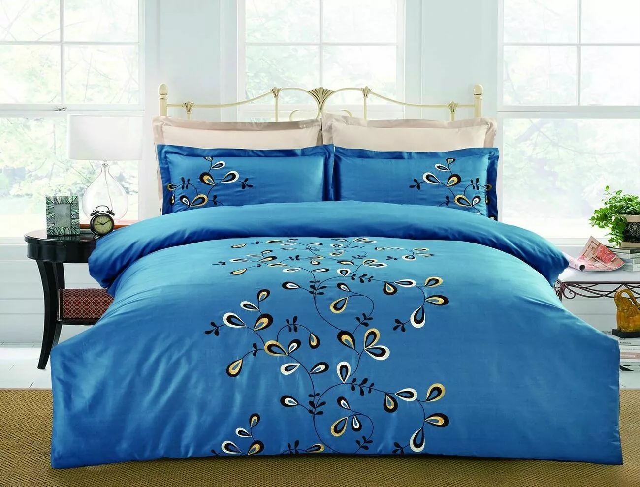 Постільна білизна виготовлена з сатину 100% бавовна з гладенькою і дуже щільною поверхнею, м'якою і шовковистою на дотик. Модний дизайн з вишивкою. Комплекти запропоновані у півтораспальному, євро та сімейному розмірах.