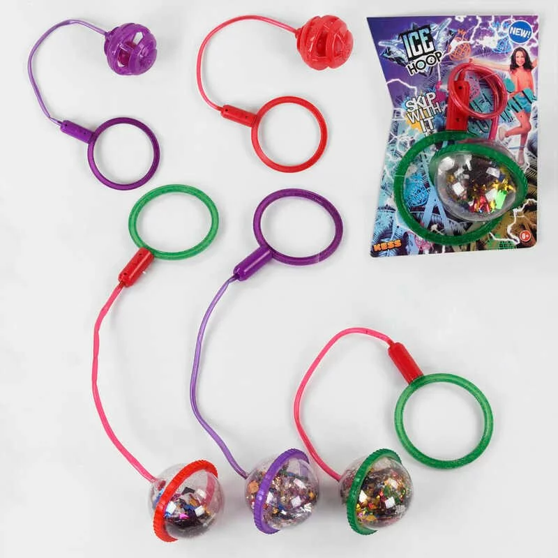 Скакалка на ногу SA 1001 (168/2) підсвічування мультиколор, в кулі світлодіодний м'ячик, на батарейках, на листі