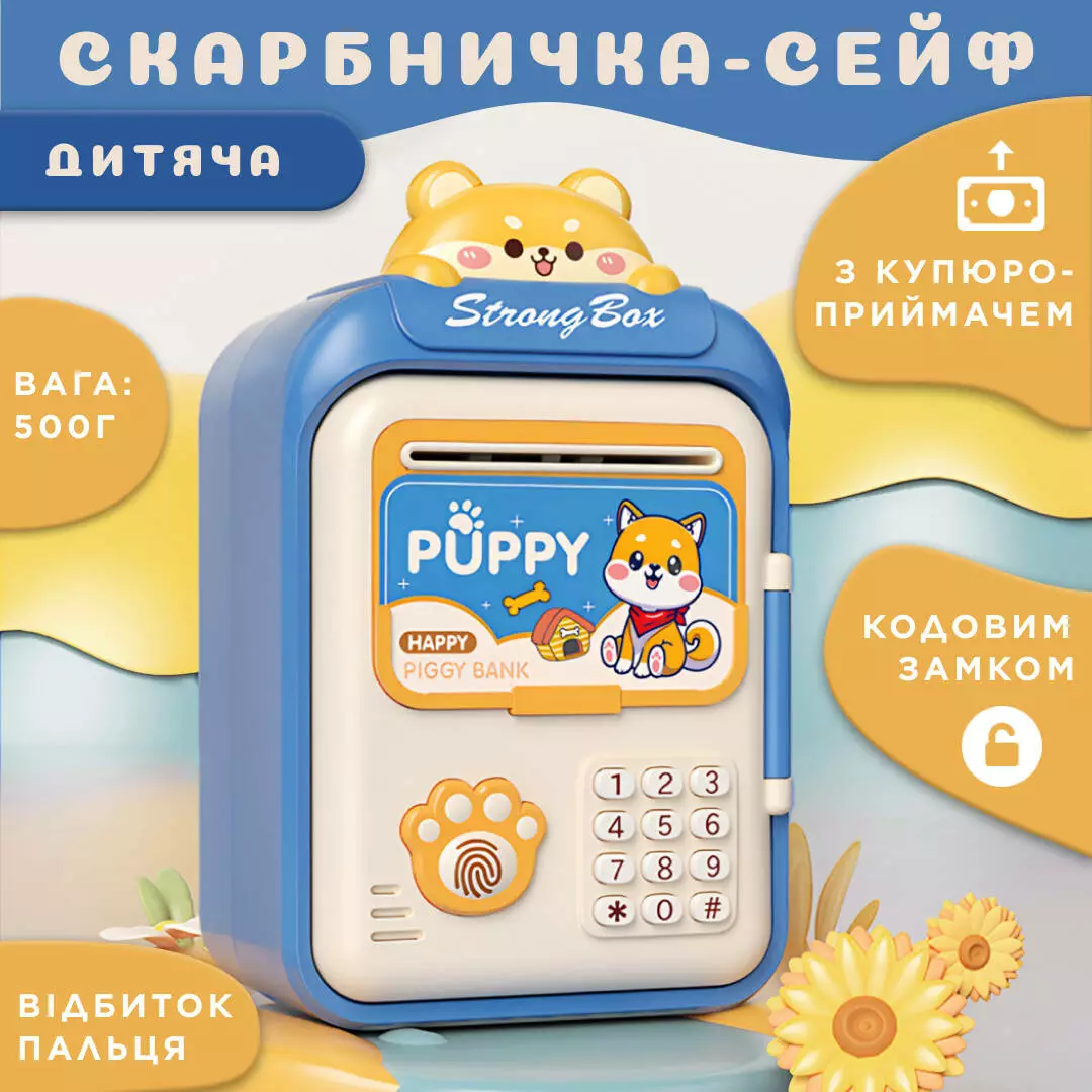 Скарбничка сейф Puppy - це не просто місце для зберігання грошей. Це також веселий та інтерактивний спосіб навчити дітей фінансової грамотності та відповідальності. Завдяки своєму милому дизайну та цікавим функціям скарбничка стане чудовим подарунком для дитини.