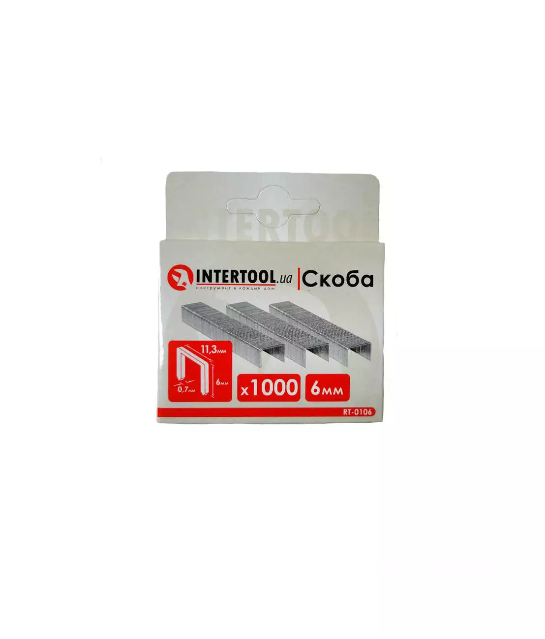 Скоба 6 мм, уп. 1000 шт., ширина 11.3 мм INTERTOOL RT-0106