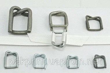 Скоба проволочная (пряжка) - металлический, самозажимной замок для скрепления, натяжки и/или подтяжки стреппинг лент , лент полипропиленовых и ПЭТ шириной до 19 мм. Пряжка незаменима при упаковке, хранения и транспортировки различных мало - (до 500кг: кухонная техника, доски, мебель, фурнитура, ящики с продуктами) и высоко габаритных товаров и грузов (лесоматериалы, кирпич, трубы, огнеупорные изделия, металлопрокат, другое). Пряжка не нуждается в дополнительных устройствах или механизмах для скрепления, используется только натяжное устройство. Преимуществом использования пряжек перед скрепами для лент является возможность подтянуть ленту при усадке, утруске, усушке в любой момент. По надёжности соединения пряжка не уступает скрепе.