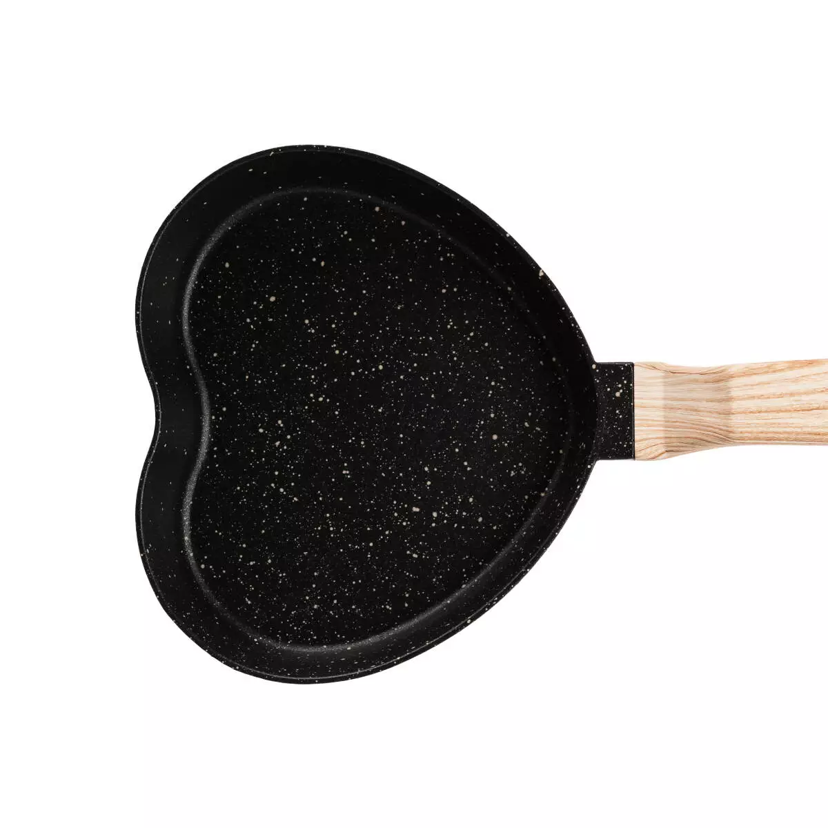 Сковорода для омлету та яєчні у формі серця стане чудовим доповненням до будь-якої кухні. Її виготовлено з легкого та міцного алюмінію, який забезпечує довговічність та надійність у використанні. Антипригарне покриття дозволяє готувати без зайвих зусиль, забезпечуючи легке відокремлення їжі від поверхні. Завдяки об'єму в 400 мл та діаметру дна 9,5 см, сковорода ідеально підходить для приготування як невеликих порцій, так і більших страв. Форма серця додає приготуванню особливого шарму, роблячи кожен сніданок особливим.