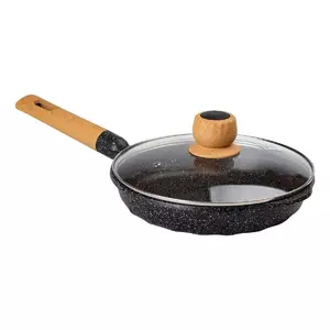 Сковорода діаметром 24 см - відмінний вибір для приготування їжі на кілька осіб або для невеликої родини. Посуд виготовлений з литого алюмінію, добре проводить тепло і забезпечує рівномірне приготування. Сковорода має антипригарне мармурове покриття, завдяки чому можна готувати страви з мінімальною кількістю олії, а гладка внутрішня поверхня полегшує миття.