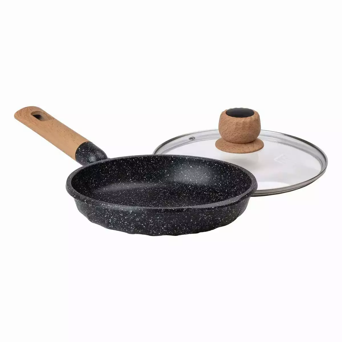 Сковорода з антипригарним мармуровим покриттям та кришкою 22 см, чорний