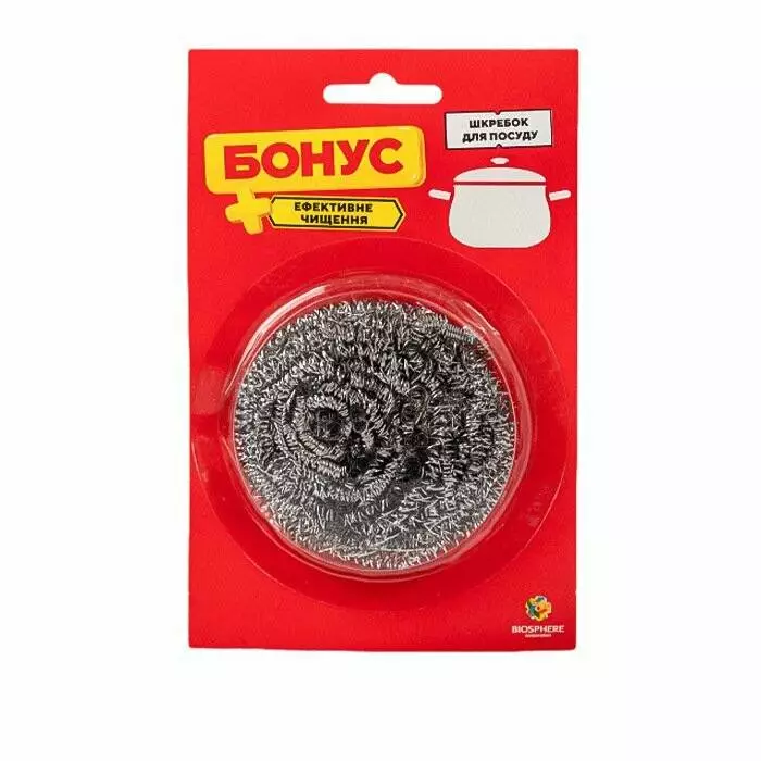 Скребок призначений для видалення складних та застарілих забруднень на сковорідках, каструлях, робочих поверхнях