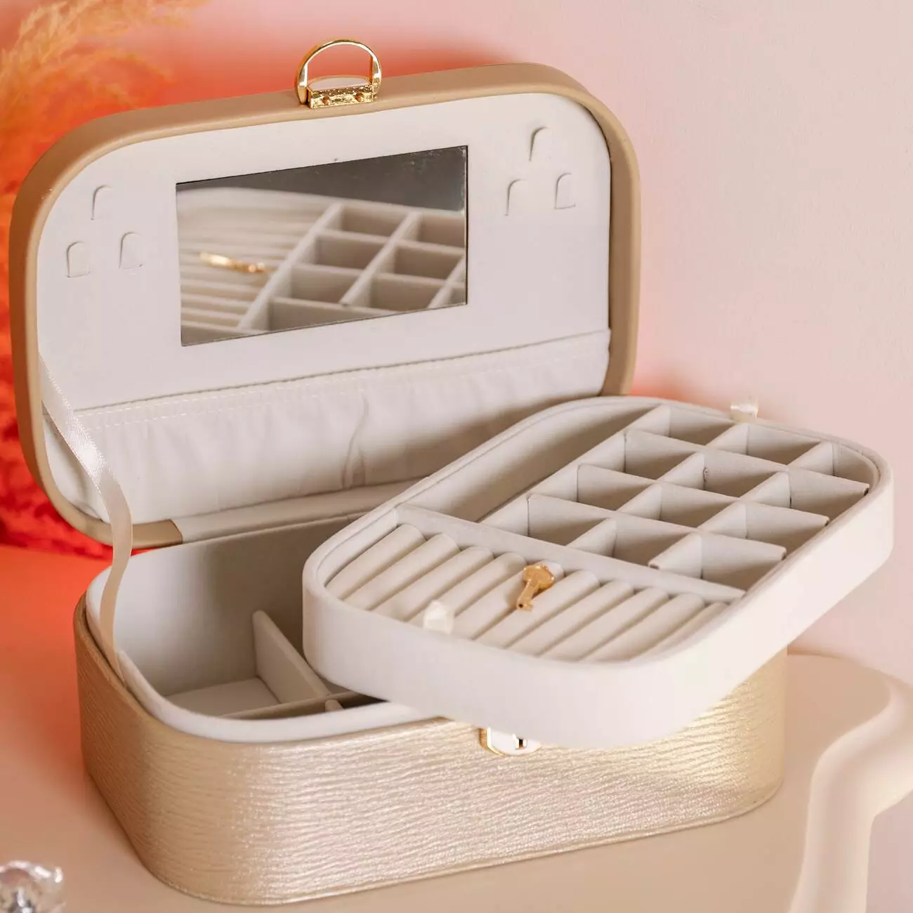 Скринька-органайзер для прикрас із замком 26х18х9,5 см, бежевий