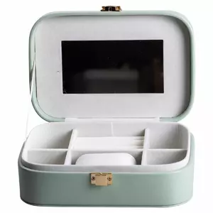 Органайзер доповнений дзеркалом у кришці, що робить його використання ще зручнішим. Скринька щільно закривається, є накидний замок, що запобігає випадковому відкриванню.