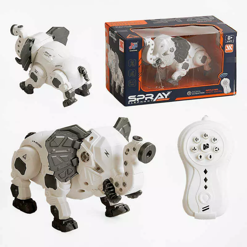 Слон на радіокеруванні 128 A-40 (24) світло, мелодія, звуки, рух вперед/назад, від батарейок, пульт, парогенератор, режими, в коробці