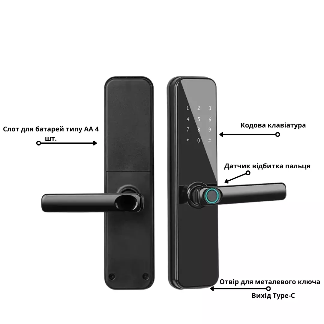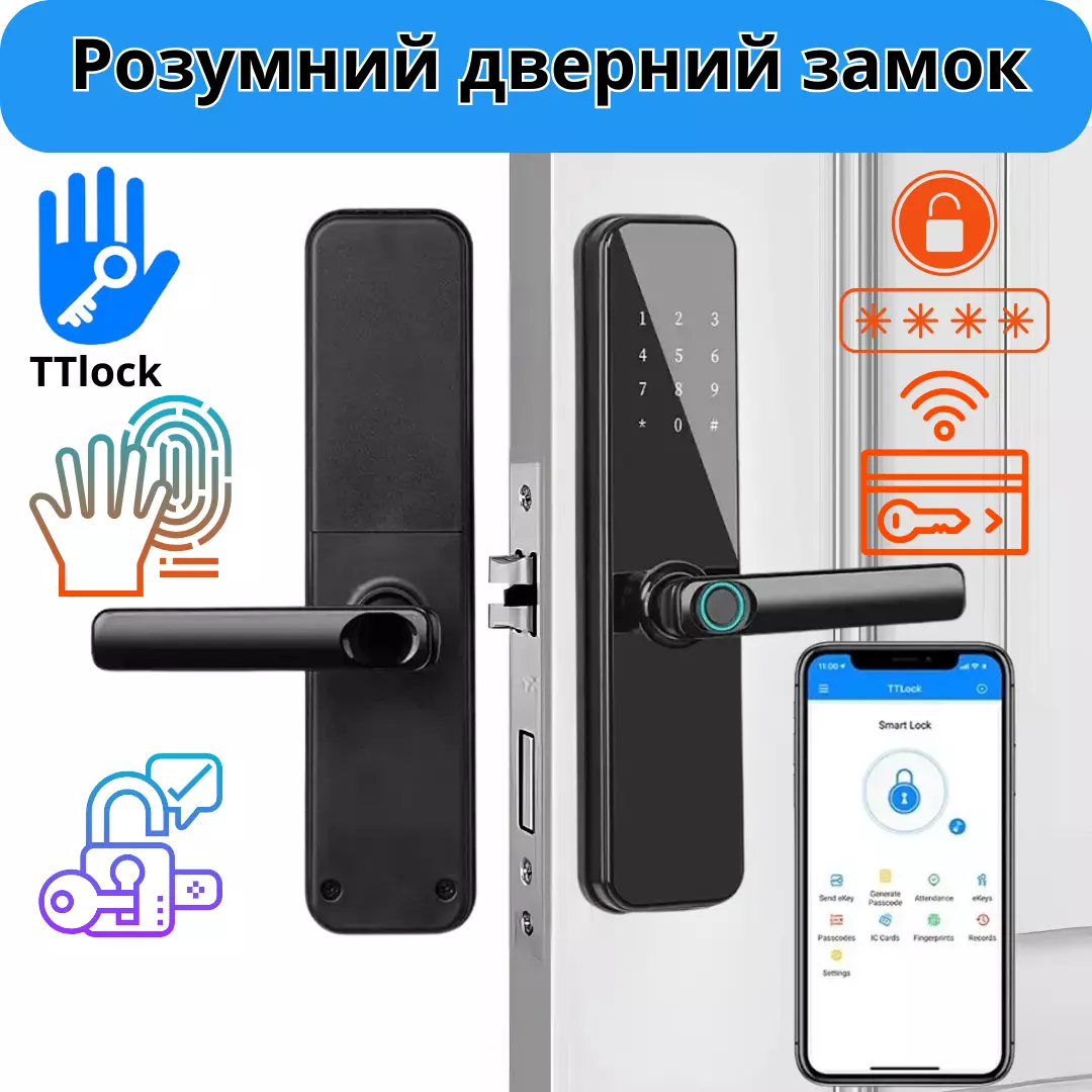 пароль, карту-ключ, а также через приложение TTlock App. Для