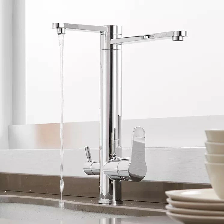 Смеситель для кухни для фильтрованной воды двухрычажный, кран кухонный с двойной ручкой WanFan Хром