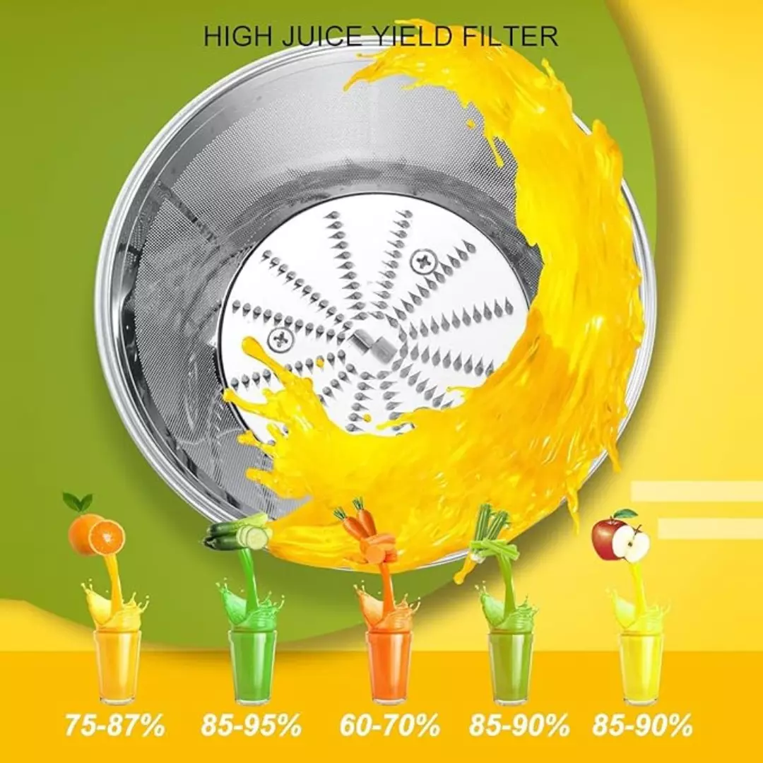 Розроблена для легкого вичавлювання соку, ця потужна та ефективна соковижималка витягує свіжий, багатий на поживні речовини сік з ваших улюблених фруктів та овочів за лічені секунди. Ідеально підходить для насичених ранків, сімейних сніданків або здорового способу життя, вона забезпечує смачний сік з мінімальними зусиллями.