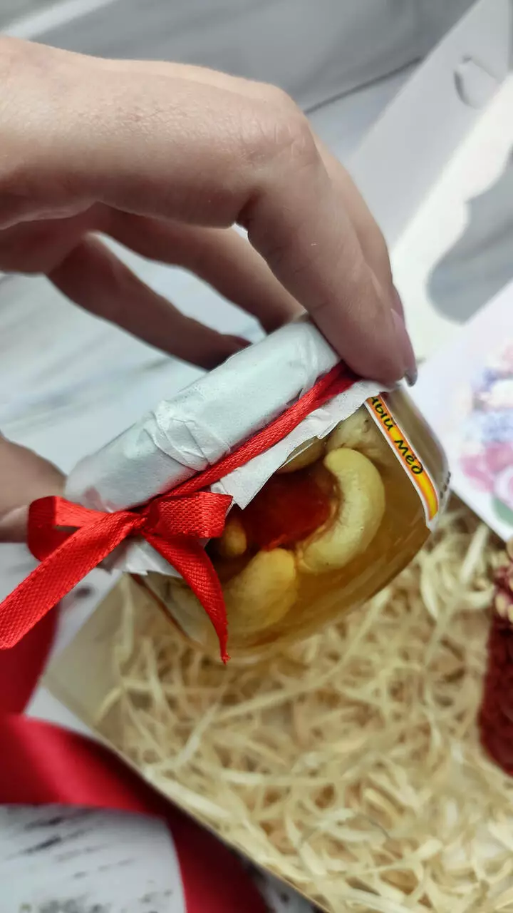 мед з горішками (арахіс, мигдаль, фундук, грецький, кешью з вишнею, кешью з журавлиною)